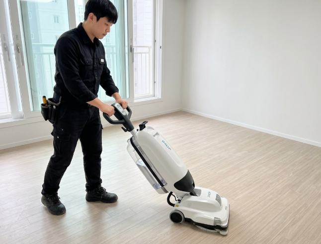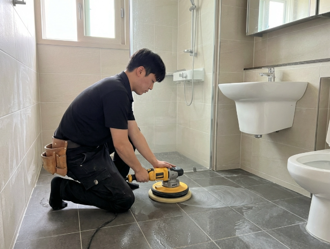 일반 걸레 청소와는 차원이 다릅니다. 걸레는 표면만 닦지만, 폴리셔는 줄눈 속까지 파고듭니다. 작업 끝나고 맨발로 밟으면 "와, 진짜 다르네"하고 느끼실 겁니다.